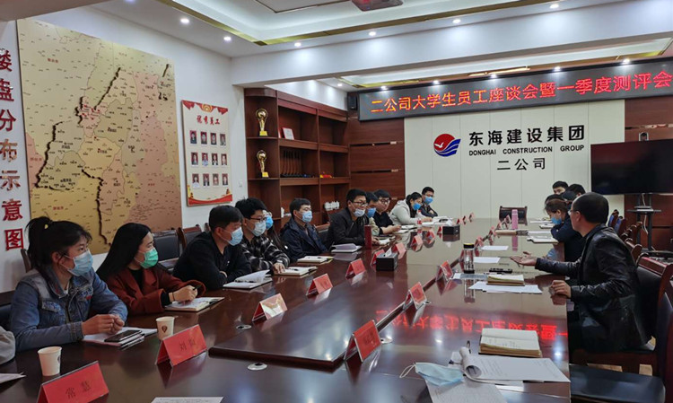 為增強大學生員工的歸屬感和對企業的認同感,4月13日,東海建設集團各分公司分別舉行了2019屆大學生員工座談會暨一季度考評活動。自大學生入職以來,建設集團各分公司開展導師帶徒活動,對新進大學生進行一對一的業務學習幫扶和生活指導,半年多以來,先后組織兩次“融入?成長”系列的新入職員工座談會,通過座談會的匯報成果展示和評分,極大促進了大學生的進步和成長。