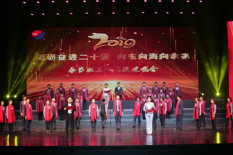 1月30日晚,東海集團“砥礪奮進二十載 向東向海向未來”2019年春節職工聯歡晚會在德州大劇院華彩綻放。東海集團董事長魏建國、總裁魏建民等集團領導與1000多名東海員工歡聚一堂,用一場精彩絕倫的視聽盛宴,揮別過去的一年,迎接嶄新的未來。