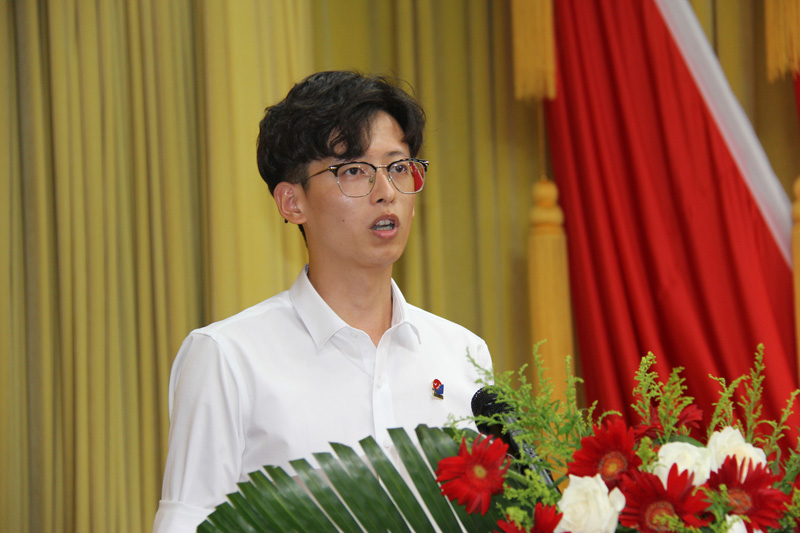 新員工代表靳建強上臺發言