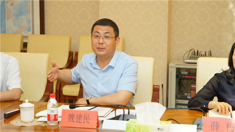 參觀結(jié)束后,雙方在集團(tuán)總部17樓會(huì)議室進(jìn)行了座談交流。魏建民簡(jiǎn)要介紹了企業(yè)基本情況。