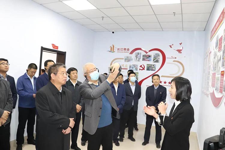 在巴黎城小區,與會人員先后觀摩了巴黎城“紅色物業”宣傳欄、鄰里晾曬區、黨員活動室、“月月說事”議事廳等,聽取了長江物業巴黎城小區創建紅色物業情況匯報。