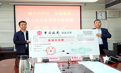 2020年初,面對嚴峻的疫情防控形勢,東海集團多舉措并舉,共同打好防疫阻擊戰,在全面抓好企業內部疫情防控的同時,第一時間捐款100萬元馳援抗擊新冠肺炎疫情,這也是德州首家捐款的企業。捐贈的款項將由德州經濟技術開發區新型冠狀病毒肺炎疫情防控工作領導小組作為疫情防控專款使用。