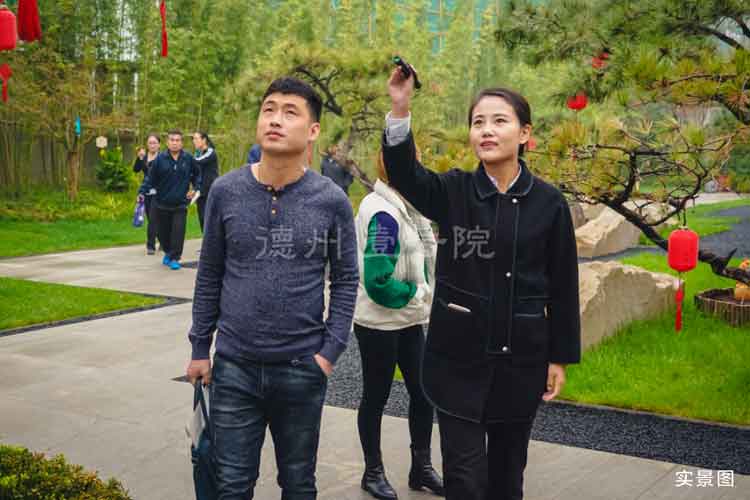 前來選房的客戶們,有多半時間都用在了觀賞園林上,僅僅是一個示范區,就有著數不清的細節營造,置業顧問們悉心的向客戶們解讀著這些細節,從入門之處的雌雄雙獅護衛,到售樓處前印有顏真卿《裴將軍詩帖》的鏡面水池,從每一個樣板院落的門匾命名,到院落之中的一花一枝,一草一木。熱愛中國山水畫文的客戶劉先生對此贊不絕口,他說,感覺德州壹號院的每一處小景都是一幅畫作,未來肯定會邀請自己的同好之友到這里來玩賞作畫,不負這樣的優雅景致。