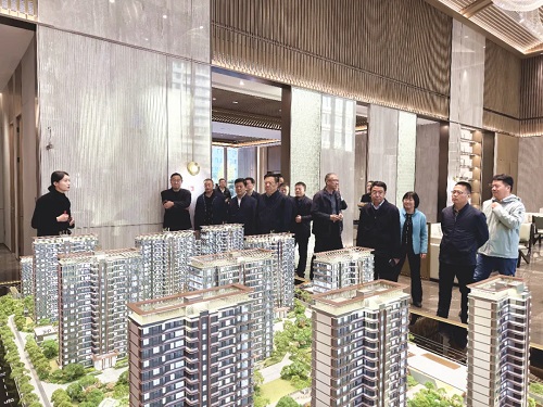 卜祥聯一行先后參觀了東海國際的營銷中心、景觀示范區、超配式業主服務中心、精裝樣板間等重要區域,認真聽取了項目的設計理念、施工工藝、配套設施等方面的詳細介紹,并對東海國際在品質管控、景觀綠化、新工藝技術應用等方面的先進經驗及亮點給予了高度評價。