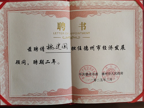 新年第一會:魏建國董事長受聘為“德州市經濟發展顧問”