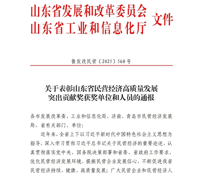魏建國董事長榮獲“山東省民營經(jīng)濟高質(zhì)量發(fā)展突出貢獻個人”榮譽稱號