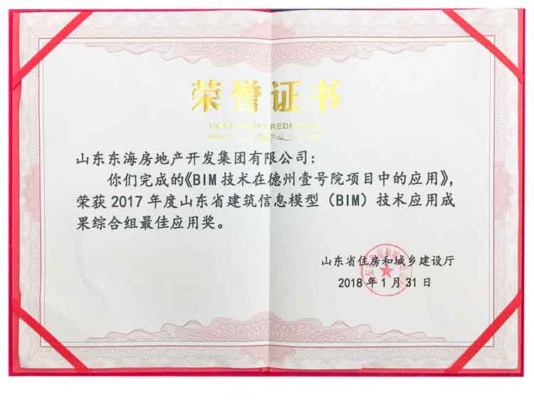 德州壹號院項目榮獲省BIM技術應用成果綜合組最佳應用獎