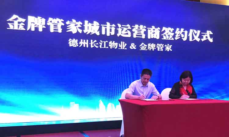 8月24日上午,在煙臺“共建共享、共創共贏——金牌管家城市運營商招募說明會”的現場,德州長江物業服務有限公司與金牌管家完成簽約,正式成為金牌管家山東省德州市城市運營商。