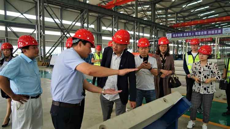 朱彩清一行首先在王新杰、蘇振水的陪同下,參觀了東海集團三東筑工裝配式建筑PC工廠、東海香港城和德州壹號院三個項目。每到一處,領導和專家們都認真查看、仔細詢問,對東海集團積極推進住宅產業化及其先進的生產工藝,對兩個開發項目的設計、用材、質量、科技含量、宜居環境營造等方面都給予高度評價。