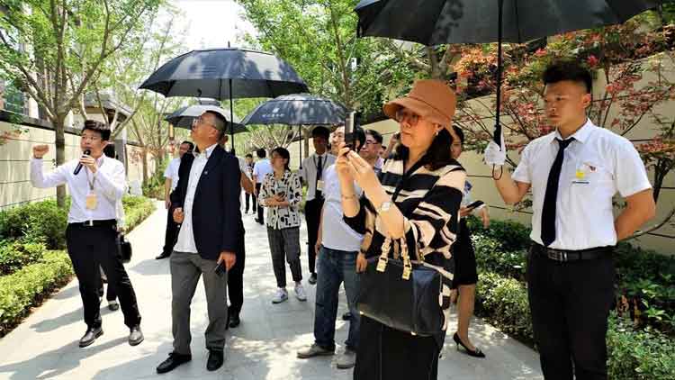 為推進綠色住區建設,推動人居環境向高質量建設和綠色發展轉變,進而促進經濟、社會和環境的可持續發展。6月4日,中國房地產業協會人居環境委員會秘書長朱彩清,中國建筑標準設計研究院總建筑師、人居委副主任委員劉東衛,第一摩碼人居環境科技(北京)股份有限公司總經理、中房協人居委副秘書長賈巖,中房協人居委研究部主任劉娟一行4人,到東海集團考察指導工作。德州市開發辦主任王新杰,德州市房地產業協會會長、東海集團董事長魏建國,德州市房地產業協會秘書長蘇振水陪同。