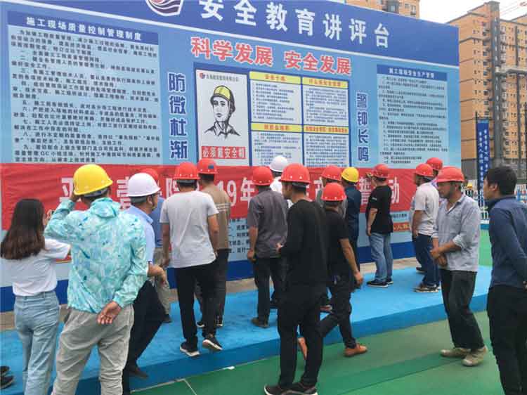 為認(rèn)真貫徹國家有關(guān)部門及集團(tuán)公司安全生產(chǎn)工作精神,大力推進(jìn)項(xiàng)目東區(qū)南部安置社區(qū)B區(qū)安全生產(chǎn)工作,6月10日,大社區(qū)分公司一、二項(xiàng)目部在項(xiàng)目部宣講區(qū)舉行2019年項(xiàng)目東區(qū)南部安置社區(qū)B區(qū)“安全生產(chǎn)月”活動啟動儀式。 啟動儀式首先由一項(xiàng)目部項(xiàng)目經(jīng)理王華德作動員講話,二項(xiàng)目部項(xiàng)目經(jīng)理李延軍帶領(lǐng)全體人員進(jìn)行安全宣誓,并在“防風(fēng)險 除隱患 遏事故”橫幅上鄭重簽名,隨后給現(xiàn)場勞務(wù)施工作業(yè)人員發(fā)放夏季安全生產(chǎn)“八防”宣傳手冊及防暑藥品。 在安全生產(chǎn)月期間,大社區(qū)分公司通過一系列有效措施營造了濃厚的活動氛圍,使全體職工充分認(rèn)清安全生產(chǎn)工作的重要性,安全意識得到進(jìn)一步提高,確保公司安全生產(chǎn)形勢的穩(wěn)定向好發(fā)展。 濟(jì)南公司開展系列活動 把安全工作落到實(shí)處 根據(jù)《國務(wù)院安委會辦公室關(guān)于開展2019年全國“安全生產(chǎn)月”和“安全生產(chǎn)萬里行”活動的通知》要求,東海建設(shè)集團(tuán)濟(jì)南分公司計劃在6月全面開展“安全生產(chǎn)月”活動,并詳細(xì)制定了安全月活動方案。 6月3日濟(jì)南公司組織召開“2019安全生產(chǎn)月啟動會”,濟(jì)南公司總經(jīng)理宋亞華在會上作重要講話,強(qiáng)調(diào)了本次安全月“防風(fēng)險、除隱患、遏事故”的主題思想,并要求濟(jì)南公司各項(xiàng)目部根據(jù)實(shí)際情況積極開展安全生產(chǎn)活動,通過開展安全知識宣講、應(yīng)急演練、派發(fā)宣傳單頁、懸掛海報條幅、安全知識有獎競賽等一系列活動,形成了“人人參與、全面安全”的局面,使安全生產(chǎn)的觀念更加的深入人心,確保風(fēng)險可控,減少隱患,排除事故,讓廣大務(wù)工人員懂安全、知風(fēng)險、防事故。