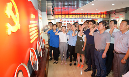 7月9日,東海開發集團黨支部7月份黨員活動日活動在東海大廈黨員活動室召開,全體黨員以集體宣誓的方式重溫入黨誓詞。在鮮紅的黨旗下,全體黨員舉起右拳,莊嚴宣誓。
