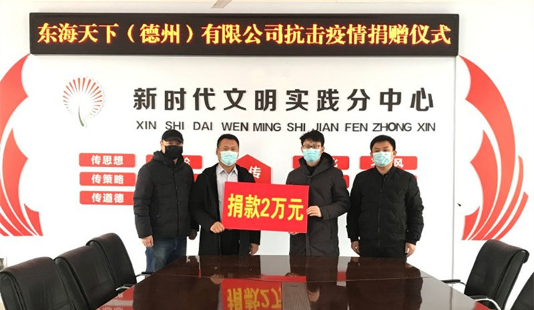 2月19日,東海天下(德州)實業有限公司向平原縣三唐鄉人民政府捐贈2萬元,助力打贏疫情防控攻堅戰。
